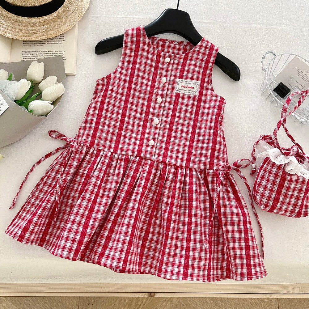 [수입] 레드체크가방원피스세트 (바로배송)