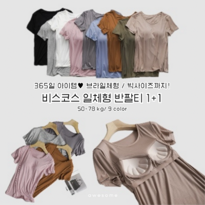 [수입] 비스코스 일체형 반팔티 1+1 (-2/2마감)