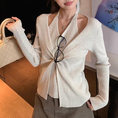 on.[CD580]골지홀터넥나시레이어드꼬임가디건