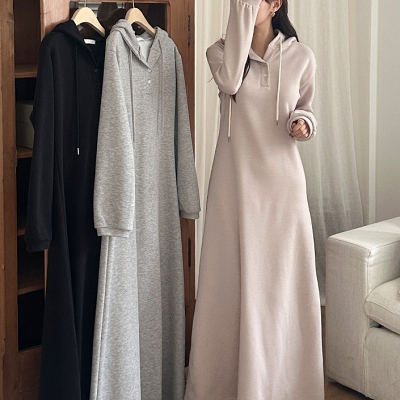 bl.속기모후드단추맨투맨원피스