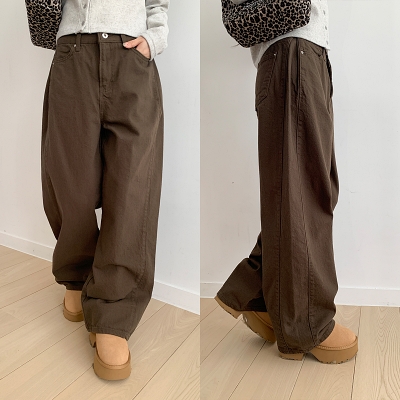 thr.코튼기모맞주름와이드팬츠