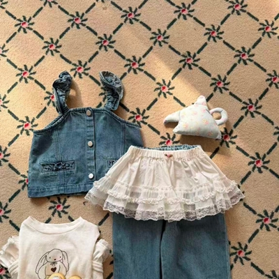 아이아이.봄)와이드프릴데님상하세트