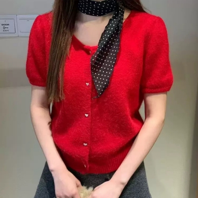 on.[CD606]앙고라퍼프반팔가디건