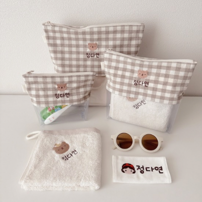 [국내] 투명 베이지체크 방수파우치