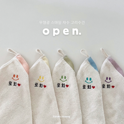 깜찍한 자수: 귀여운 스마일과 네이밍으로 애착가는 고리수건입니다