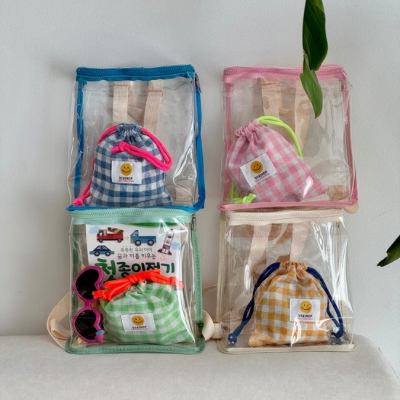투명한 젤리백 속 귀여운 체크 파우치까지!